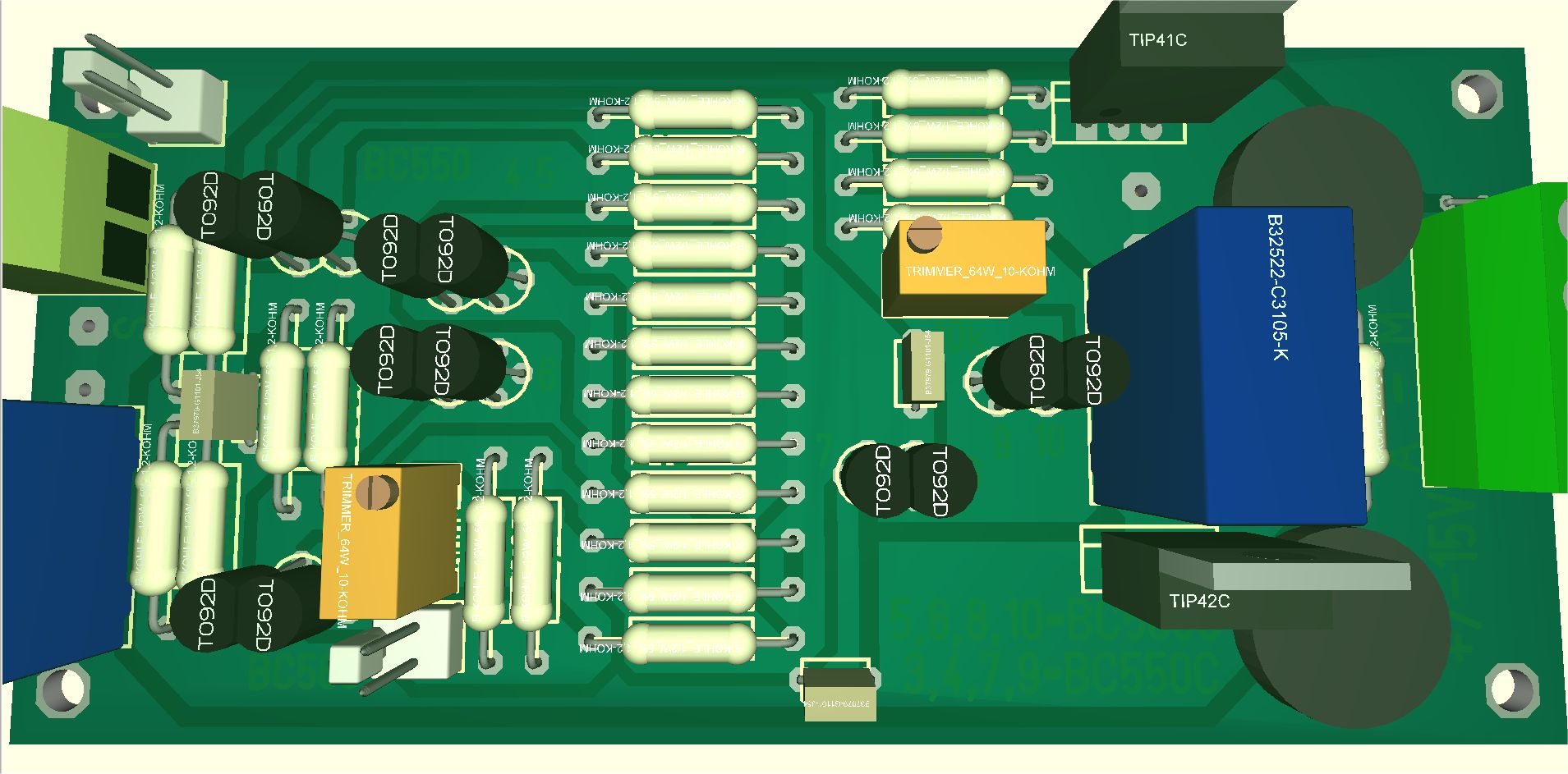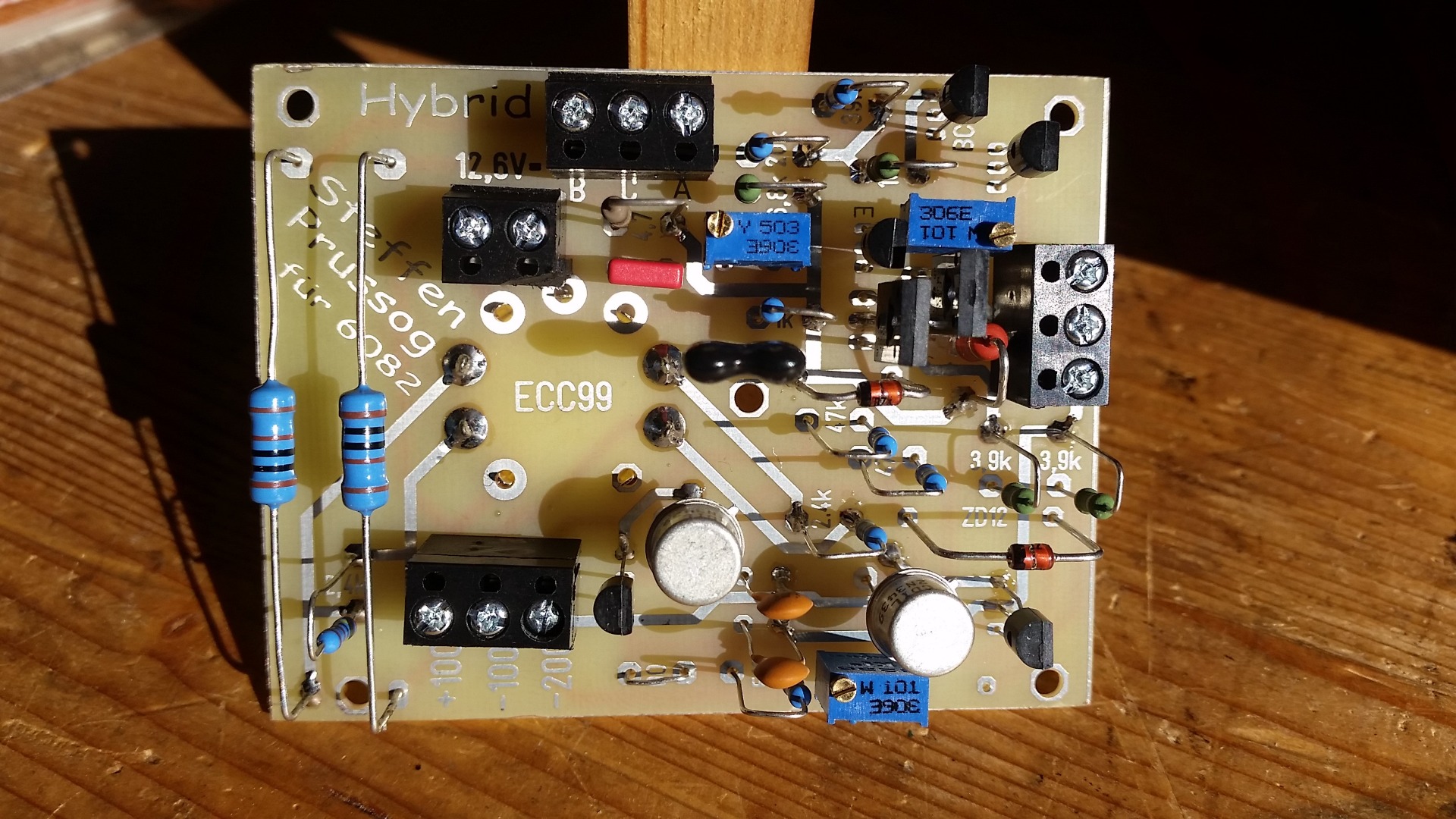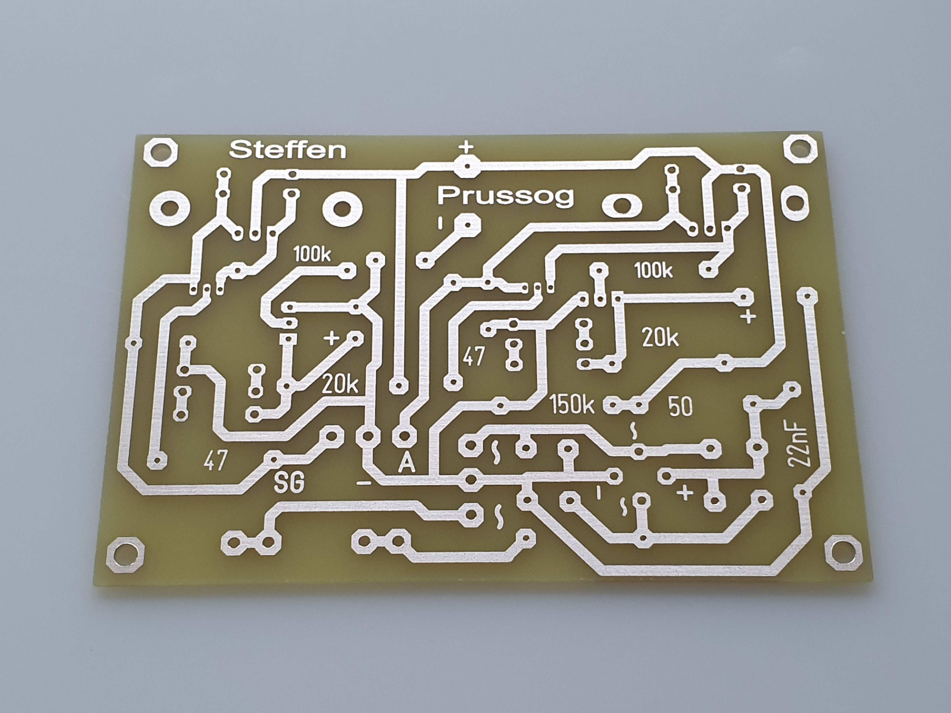 Hier die Probeplatine, eine Treiberstufe für die Röhrenendstufe. Die Platine ist noch nicht optimiert.